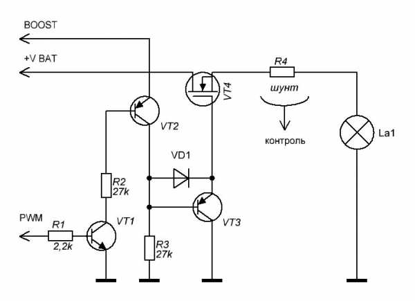 Но если мы собираемся строить на N-канальных с «земляной» нагрузкой, то тут все резко осложняется. Не вдавась в подробности скажу, что нужно на gate подавать напряжение на 10В выше напряжения питания. Тут самое простое — это применение специализированных драйверов: www.google.ru/search?q=%D…AA&biw=1440&bih=755&dpr=1 Но они годятся ТОЛЬКО при коэффициенте заполнения входного сигнала от 5 до 95%. Это налагает некоторые ограничения. Ограничивать себя не люблю) Да и не хочу потер мощности 5% — сей девайс будет запитан толстым проводом от генератора для минимизации потерь в проводах и максимального увеличения яркости ламп. Потому вариант с такими драйверами мне не подходит. Выход один: иметь источник напряжения выше напряжения штатной сети на 10В т.е. BOOST.