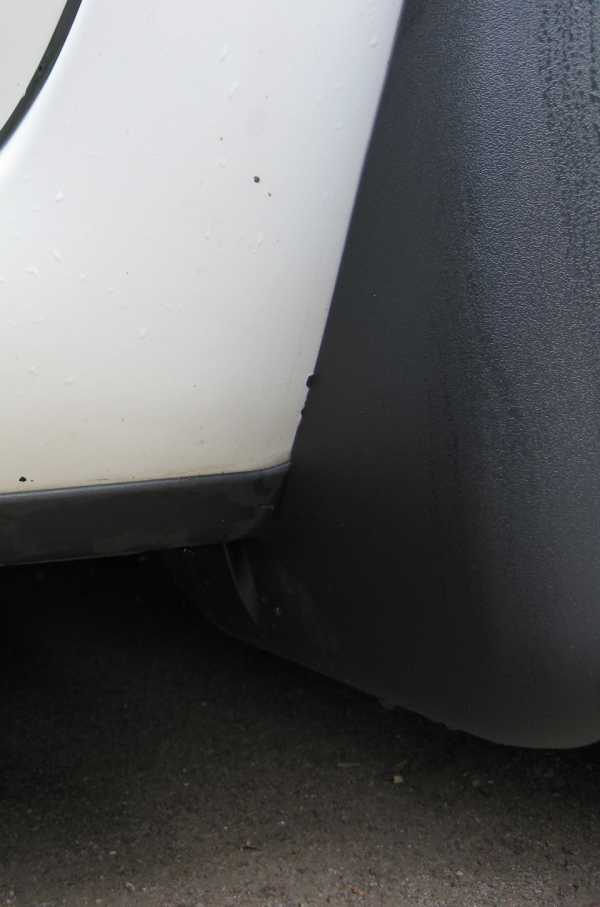 Передние брызговики у меня стояли раньше пластиковые, стоковые. Наверняка многие меня поймут, у этих штуковин есть одна весёлая особенность: даже при аккуратном обращении с машиной, они не гнутся, а выламываются с корнем, с болтами.