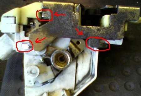 2) При постановке авто на сигнализацию, ц.з. не закрывал двери! Ни одну! Точнее он закрывал, но тут же, как только закрывал, мигом открывал. Долго курил форумы, но ничего путного вычитать не смог, кроме как необходимость проверки в таком случае концевиков сигнализации…но тут то и ежу понятно, что дело не в них, а, скорее всего в самом центральном замке. Взяв инструмент в руки, принялся за разборку водительской двери и поиск причины данной неисправности.