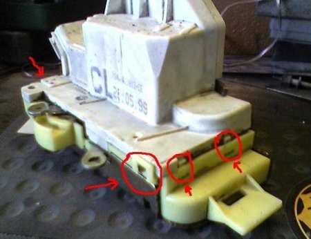 3. Отверткой разогните защелки, расположенные по краям корпуса. И вот, перед электромоторчик замка. Его необходимо сначала почистить, затем смазать техническим вазелином, ну и собрать все в обратном порядке.