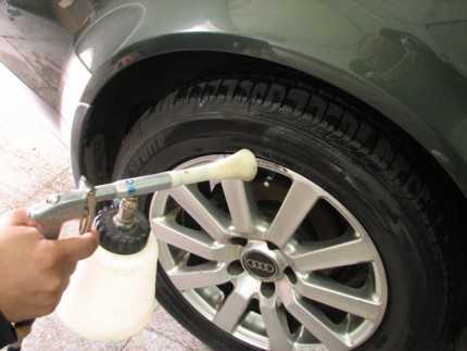 Скорее всего, к этому моменту работы шины у вас уже вымыты, но на всякий случай обратите внимание – средство наносится на хорошо очищенные шины.