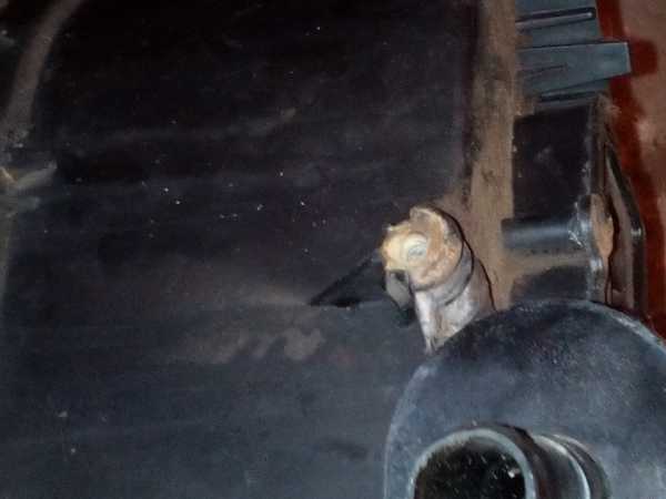 Второй шланг отвернул с трудом очень неудобно был поставлен хомут а слева видна шпилька с гайкой которую подпиливать пришлось.