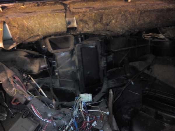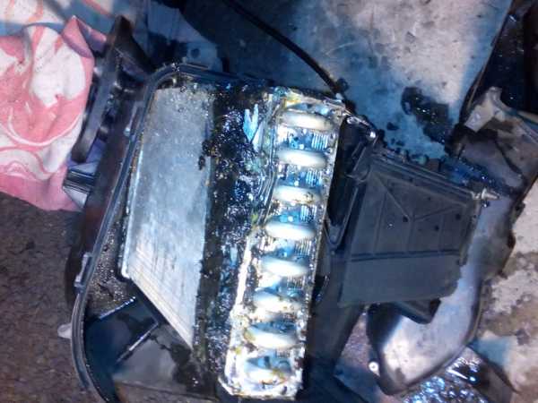 Ситуевина такая; поехал я на рыбалку… приехал, разложился, начался дождь, я -давай валить оттуда скорей на горку. горка была крутой и скользкой и я увлекся, весь такой газую, жгу сцепление, жду, пока вырастет полный привод… и тут, на самом интересном месте, — облако пара, херувимы, слабо-кофейный, (как мне кажется), запах антифриза в салоне… глушу мотор, ставлю на ручник, выпрыгивая из салона, думаю, ну, ппц… так оно и было. ОЖ в системе, — как и не бывало.подумал, что дело в радиаторе печки, перекинул просто патрубок напрямик, убрав из системы, набрал воды из речки. половил рыбы, пока дорога просохла, и поехал к вечеру домой. результат, — разорванный ЖОП радиатора печки, мокрый сладкий салон, запотевшее лобовое стекло и 7 кг рыбы… теперь, — к практике. как снять печку, писать не буду, ибо об этом тута есть, буду о том, как заколхозить радиатор, если тэнге немае… 🙂