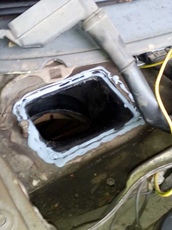 Место которое нужно промазать герметиком что б вода не просачивалась так как там снизу стоит вентилятор.