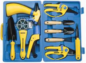 Набор садовых инструментов в виде ножниц для подрезки растений, секатора и других инструментов всегда пригодятся в садовом хозяйстве.
