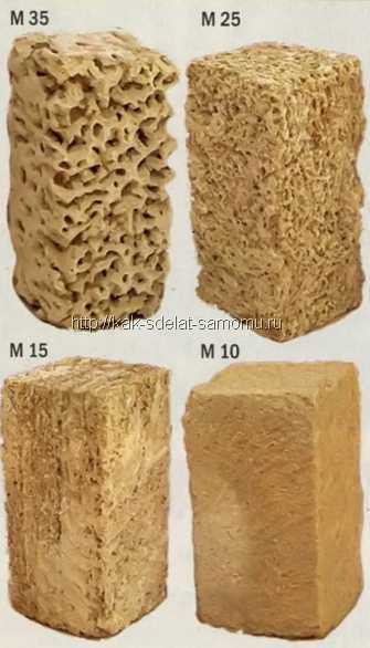 Правда, менее плотный камень плох тем, что при погрузочно-разгрузочных работах осыпается, приобретая неровную поверхность, а это увеличивает расход раствора при кладке стены. Поэтому камни марок М10, М15, М20 весом 8-12 кг лучше использовать для строительства гаражей, бань, хозяйственных пристроек, а также третьих, мансардных этажей домов. Камень марки М25 весит порядка 14-17 кг и лучше всего подойдет для строительства 2-3-этажных домов, даже с железобетонными панелями перекрытия. Наконец, камень марки М35 весом 22-25 кг будет надежным основанием и подойдет для строительства первых этажей зданий высотой более двух этажей. Но используется он редко, поскольку недешевый, а марки М25 достаточно для большинства конструкций, тем более в малоэтажном строительстве.