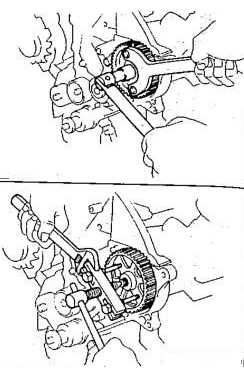 5. установите на место шкив распредвала – штифты распределительного вала и шкива совмещаются после чего последний удерживается специальным устройством в то время, как крепежный болт с шайбой затягиваются моментом 83 Н-м;