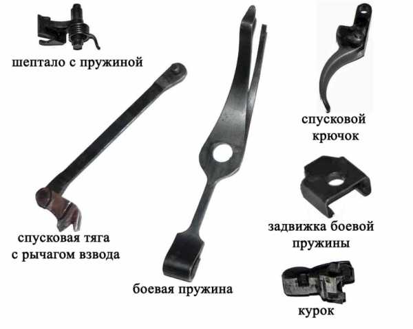 Π Π°ΠΌΠΊΠ° ΡΠΎ ΡΡΠ²ΠΎΠ»ΠΎΠΌ ΠΈ ΡΠΏΡΡΠΊΠΎΠ²ΠΎΠΉ ΡΠΊΠΎΠ±ΠΎΠΉ, Π·Π°ΡΠ²ΠΎΡ Ρ ΡΠ΄Π°ΡΠ½ΠΈΠΊΠΎΠΌ, Π²ΡΠ±ΡΠ°ΡΡΠ²Π°ΡΠ΅Π»Π΅ΠΌ ΠΈ ΠΏΡΠ΅Π΄ΠΎΡ ΡΠ°Π½ΠΈΡΠ΅Π»Π΅ΠΌ, Π±ΠΎΠ΅Π²Π°Ρ ΠΏΡΡΠΆΠΈΠ½Π°, ΠΊΡΡΠΎΠΊ, ΡΡΠΊΠΎΡΡΠΊΠ° Ρ Π²ΠΈΠ½ΡΠΎΠΌ, Π·Π°ΡΠ²ΠΎΡΠ½Π°Ρ Π·Π°Π΄Π΅ΡΠΆΠΊΠ°.