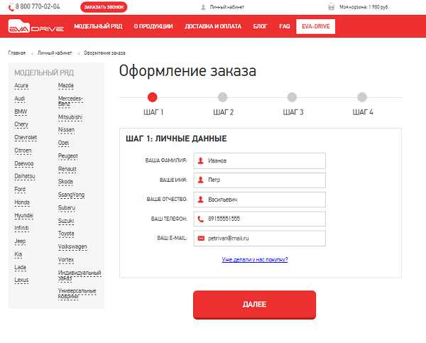 Заказывал на официальном сайте www.eva-drive.ru. Вместо обещанной недели, ждал месяц. Мотивировали задержку сезонным завалом. Оно и не удивительно, конец осени-начало зимы — сезон покупки ковриков и замены резины. ))) Коврики мне отправили ПЭК-ом.