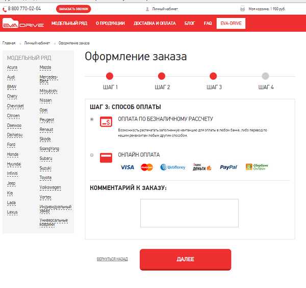 Там вы увидите выбранные вами коврики и итоговую сумму. Если все правильно, то оформляем заказ.
