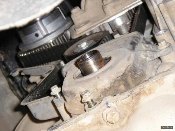 Вот теперь мы можем снять ремень ГРМ, открутить натяжной ролик и открутить шкив конвала. Запомните, как стоял натяжной ролик!!! Сзади, со стороны блока двигателя, у него имеются выступы. На них и нужно обратить внимание.