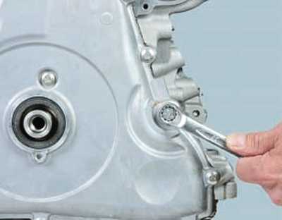 Теперь нам необходимо демонтировать датчик оборотов коленвала, выкрутив для этого все необходимые болты. Затем выкручиваем болт крепления шкива коленвала и снимаем шкив.