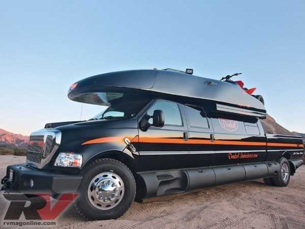 ΠΠ°ΡΠ»ΠΈΡΡ ΠΈ Π΅ΡΠ΅ Π»ΡΠ΄ΠΈ (ΠΊΠΎΠΌΠΏΠ°Π½ΠΈΡ Dunkel Bros.), ΠΊΠΎΡΠΎΡΡΠ΅ ΡΠ΅ΡΠΈΠ»ΠΈ, ΡΡΠΎ ΠΌΠ½ΠΎΠ³ΠΎΡΠΎΠ½Π½ΡΠ΅ Β«ΡΡΠΏΠ΅ΡΡΠ°Π½ΠΊΠΈΒ» F-650 Π²ΡΠ΅-ΡΠ°ΠΊΠΈ Π½Π΅Π΄ΠΎΡΡΠ°ΡΠΎΡΠ½ΠΎ Π±ΠΎΠ»ΡΡΠΈΠ΅. Π Π½Π° Π±Π°Π·Π΅ F-650 ΡΠΎΠΎΡΡΠ΄ΠΈΠ»ΠΈ ΠΌΠΎΠ½ΡΡΡΠΎΠΏΠΎΠ΄ΠΎΠ±Π½ΡΠΉ Π΄ΠΎΠΌ Π½Π° ΠΊΠΎΠ»Π΅ΡΠ°Ρ Ford F-750 Dunkel Luxury Hauler 4Ρ 4 β ΠΎΠ³ΡΠΎΠΌΠ½ΡΠΉ, ΡΠ°ΠΌΡΠΉ Π΄Π»ΠΈΠ½Π½ΡΠΉ Π²Π½Π΅Π΄ΠΎΡΠΎΠΆΠ½ΡΠΉ ΠΏΠΈΠΊΠ°ΠΏ-ΠΊΠ΅ΠΏΠΈΠ½Π³ Ρ ΠΏΡΠΈΡΠ΅ΠΏΠΎΠΌ. ΠΠ³ΠΎ Π΄Π»ΠΈΠ½Π° (Π±Π΅Π· ΠΏΡΠΈΡΠ΅ΠΏΠ°) ΡΠΎΡΡΠ°Π²Π»ΡΠ΅Ρ 9,7 ΠΌΠ΅ΡΡΠ°, ΡΠΈΡΠΈΠ½Π° β 2,5 ΠΌ, Π²ΡΡΠΎΡΠ° β 3,6 ΠΌ. ΠΠΎΠ΄ ΠΊΠ°ΠΏΠΎΡΠΎΠΌ Ρ Π½Π΅Π³ΠΎ ΡΠ°ΡΠΏΠΎΠ»ΠΎΠΆΠΈΠ»ΡΡ Π΄ΠΈΠ·Π΅Π»ΡΠ½ΡΠΉ ΠΌΠΎΡΠΎΡ Caterpillar ΠΎΠ±ΡΠ΅ΠΌΠΎΠΌ 7,2 Π»ΠΈΡΡΠ°.