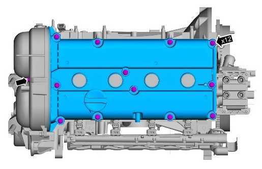 Далее выкрутите болты по периметру клапанной крышки. Болты из крышки свободно не выпадают. Для отделения крышки от корпуса двигателя нужно приложить некоторое усилие, так как, герметичность крепления обеспечивается прокладкой из полимера, хорошо прилипающего к металлу при нагревании. При необходимости заменить прокладку при сборке.