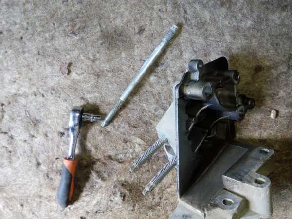 Откручиваем кронштейн крепления опоры и шпильку тоже выкручиваем, я для этого использовал головку на 6.
