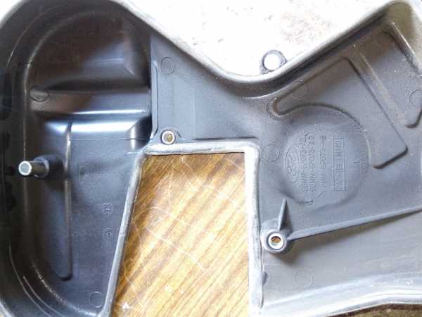 Выкрутить технологическую заглушку для сервисменов. Она находится правее и выше отверстия для слива масла. Доступ к ней закрывает привод переднего правого колеса.