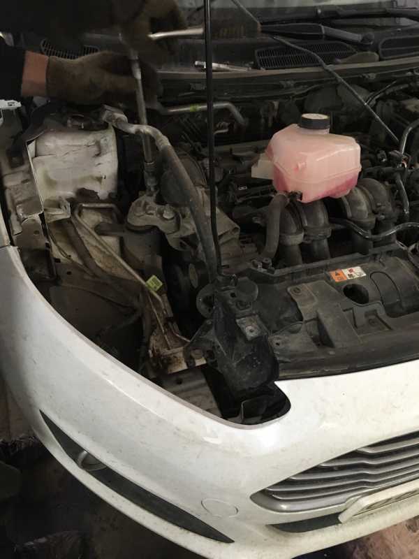 Это даёт нам место для откручивания опоры/подушки двигателя. Перед этой процедурой, я подставил опорную стойку под двигатель. Потом приспустил фиесту, что бы вес двигателя ушёл в опору. Далее открутил опору/подушку. Места стало чуть больше, но всёравно мало.