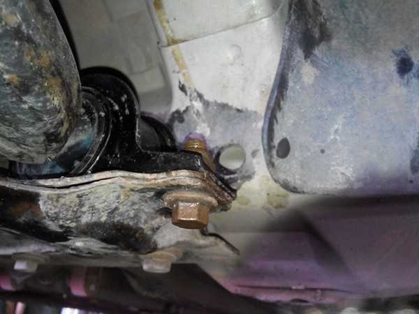Выкручиваем 2 болта крепления задней опоры рычага коловкой на 15