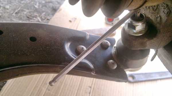 Ставим новый рычаг на место старого и закручиваем болты, но не до упора, единственное при закручивании гайки на палец шаровой опоры шестигранником придерживаем болт от прокручивания