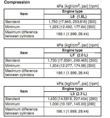 Таблица определения компрессии двигателей Мазда (аналогичны двигателям Форд соответствующего объема):