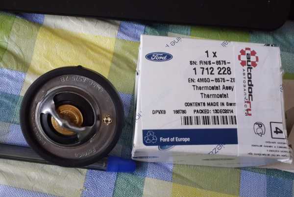 Еще зимой заметил, что машина полностью не прогревается, температура держится на 82 градусов, только в очень большой пробке прогревается до нормальной. Окончательно меня это достало когда стало теплеть на улице. При температуре на улице +3, ехав по трассе машина также не прогревалась, и даже при +10 в городе если не стоять в пробках. Изучив подробнее эту тему на ffclub.ru (ffclub.ru/topic/74968/) принял решение менять термостат. Сначала искал аналоги на 88 гр., т.к. штатный приоткрывается на 82 гр. Но ничего хорошего не нашел (Wahler без резинового уплотнения меня не устраивал). Тогда я купил оригинальный (1712228, для 1,6/100) и подпилил шток, но не на 3 мм как в шапке, а поменьше – на 2,6 мм, т.к. посчитал что открытие термостат на 90 слишком позднее.