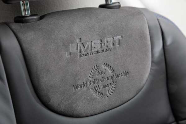 Сиденья обшиты кожей и алькантарой, а на спиках вытеснены логотипы спецверсии и повод, которому посвящён автомобиль — чемпионский титул в WRC-2017. Спортивный руль получил вставки из карбона, а по всему салону — включая коврики и приборную панель — размещены эмблемы MS-RT.