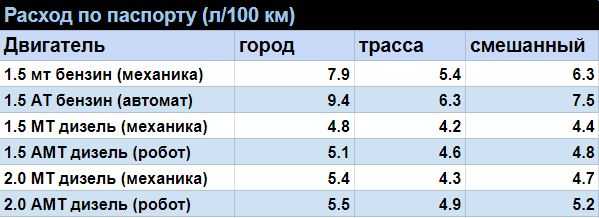 | Двигатель | Расход (трасса) | Расход (город) | Расход (смешанный цикл) |