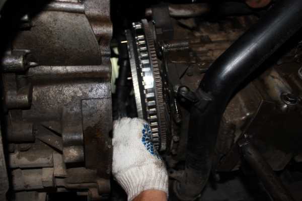 12. Далее положив её на левый бок снимаем сцепление и выжимной.