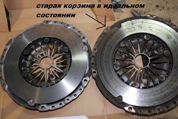 Казалось бы, можно поменять только диск, а корзина то вполне может ходить. Думаю, что частично это так, но у нее тоже есть износ. И проявляется он прежде всего в том, что лепестки у своих кончиков стачиваются об выжимной подшипник, да и плюс к тому лепестки немного теряют свое положение начальное (гибкость).