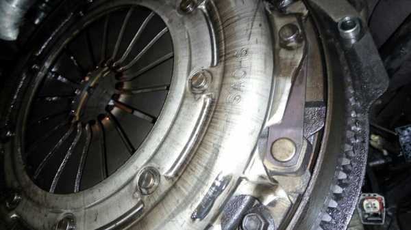 Когда достали коробку и разобрали сцепление, то оказалось, что диск сцепления еще хороший и до заклёпок еще огого, почти как на новом. Корзина тоже хорошая, а вот выжимной шелестит и маховик люфтит достаточно сильно.