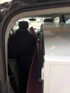 А здесь перевозка разобранной мебели для нашей детской. Длина самой длинной панели 2 м 43 см.