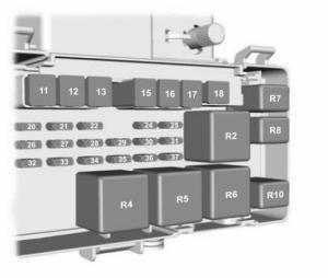 | F3 | (20A) Реле системы освещения в дневное время, реле ближнего светофор |