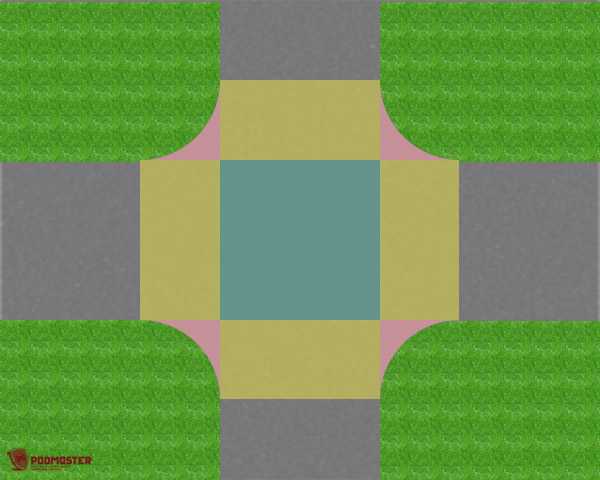 В общем, посмотрите на картинку. Границы стандартного перекрестка обозначены желтым.