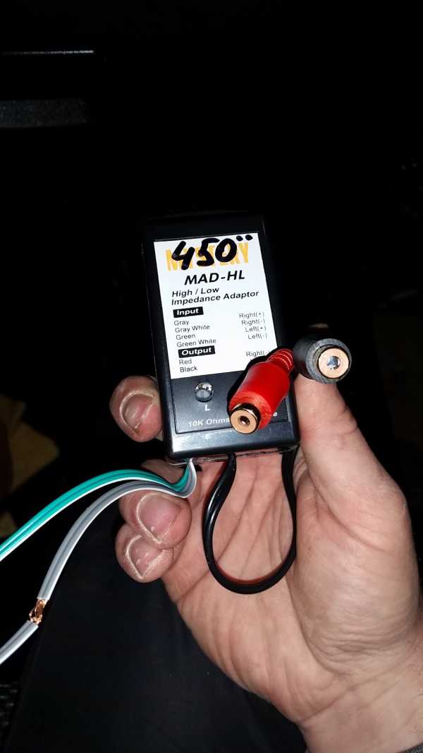 Что делать если у вашего усилителя или активного сабвуфера нет такого входа? Решение есть — это адаптеры высокого уровня (конвертеры уровня сигнала), например CTLOC20 или CTLOC10. Вы подключаете такой конвертер на выход «на колонки» с магнитолы, с адаптера получаете линейный выход на усилитель.