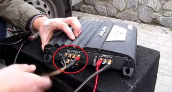 3. Подключаем усилитель к сабвуферу (динамикам).