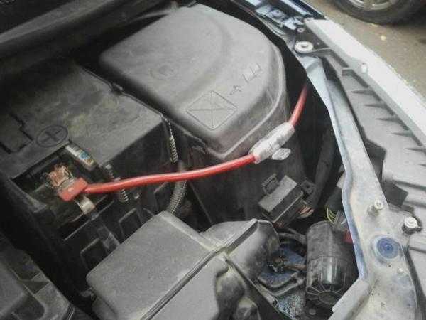 Положительный контакт можно скрыть за салонной обивкой или пластиковыми накладками на порогах машины. Желательно по всей длине его фиксировать с помощью пластиковых хомутов. В подкапотном пространстве соответствующий кабель с положительным контактом монтируем с плюсовой клеммой или в разъем к одному из проводов, соединяющихся с «плюсом». Обезопасить схему нужно, врезав перед подключением держатель с предохранителем.