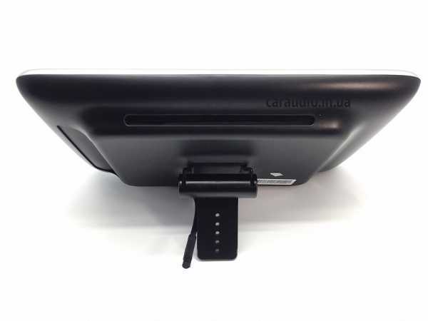 С тыльной стороны расположены USB, SD слоты, а также слот для загрузки DVD-диска что по мнению большинства наших клиентов является излишеством (они предпочли бы за наличие DVD не платить). Также прямо на задней панели расположено крепление при помощи которого Incar CDH-101 крепится к стойкам подголовника автомобиля. Крепление позволяет наклонять монитор в вертикальной плоскости — регулировки по горизонтали у него нет.
