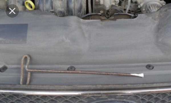 Для того, чтобы открыть капот без ключа нужно будет подготовить специальную приспособу или длинную плоскую отвертку.