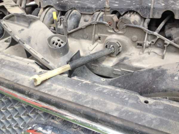 Вставляем её через решетку радиатора в паз крепления тяги и повторяем обычное открытие замка.