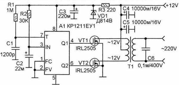 Конструкция обычного повышающего преобразователя напряжения с 12 на 220