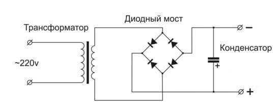 Кроме того, можно самостоятельно собрать блок питания для постоянного тока, выбрав для него подходящую схему. Наиболее распространенытрансформаторные устройства, преобразующие 220 вольт во вторичное напряжение, которое выпрямляется диодным мостом, сглаживается конденсатором и регулируется транзистором с помощью подстроечного резистора.