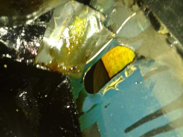 Заводская (не знаю, как правильно назвать всё это дело) шумо-вибро-тепло изоляция в виде чего-то вроде войлока полностью пропитана отработкой, пропитана настолько, что пытаться отмыть её не имело никакого смысла (не мог сфотографировать, так как на тот момент руки по-локоть были в масле).