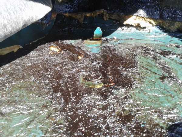 На полу, под действием отработки, «таял», по всей видимости, битум.