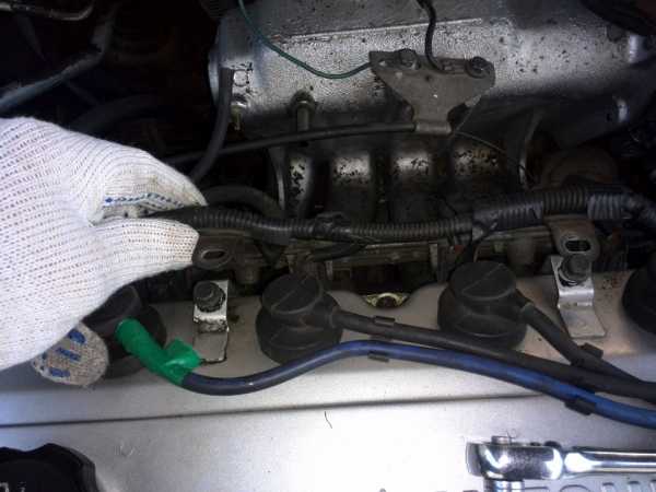 Под задним сиденьем снимаем лючек бензонасоса и отсоединяем фишку на насос.Пару раз крутим стартером для снятия давления в топливной системе. Снимаем клемы акума.Отсоединяем фишки на форсунках и снимаем косу, открутив перед этим два болта на клапанной крышке, которые ее фиксируют, и отгибаем в сторону воздухана.