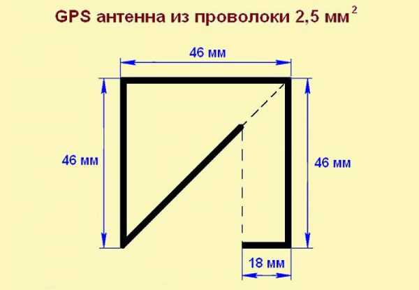 В обычных же, недорогих GPS трекерах, такого разъёма нет. Так что самодельная доработка вполне оправданна. Чем хороша данная антенна, так это тем, что она проста в изготовлении, и имеет миниатюрные размеры, это квадрат 46 на 46 мм. Антенна изготавливается из медной проволоки сечением 2,5 мм2. Это обычный монолитный электрический провод, который используется в электропроводке.