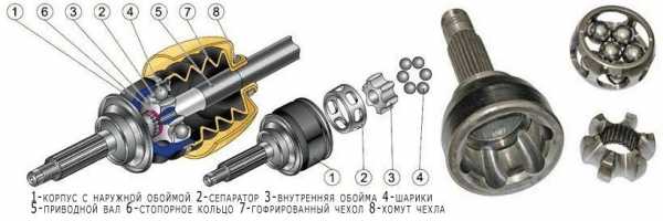 Этот ШРУС самый распространённый, существуют и другие варианты конструкции шарнира.