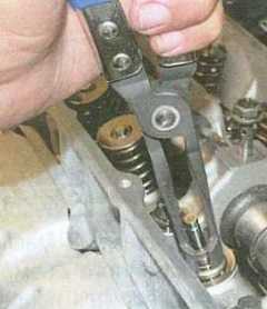 Приспособа для рассухаривания клапанов. На фото процесс снятия сухариков
