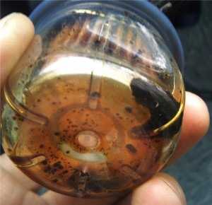 На фотографии ниже видно небольшое количество капель масла… скопилось за полтора месяца активной езды. (При умирающих МСК такая баночка наполнится маслом буквально за несколько дней или неделю)