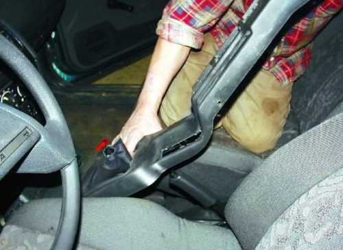Снимаем накладку под ручником.