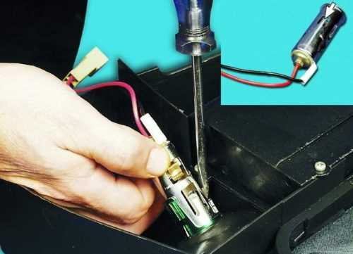 При установке нового прикуривателя соблюдаем полярность подключения клемм.